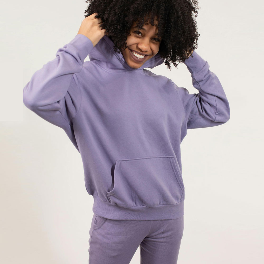 Style: Classic pullover or cropped hoodie in sustainable yarns