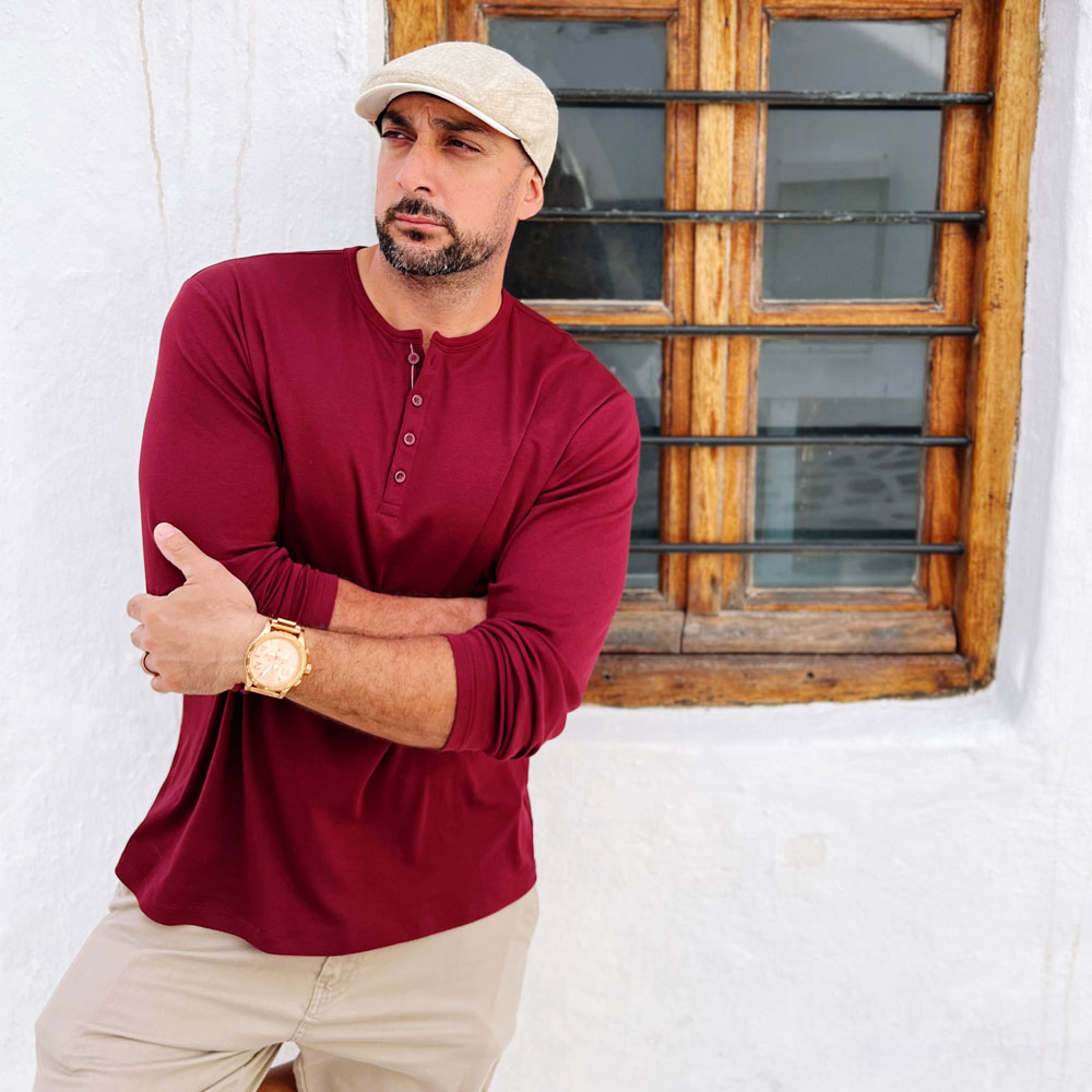 Combining a button placket with a collarless neckline, the Henley tee adds rustic charm and texture to any outfit. It’s a staple in men’s wear collections for cooler seasons. Works well layered with jackets or worn solo for a rugged vibe.