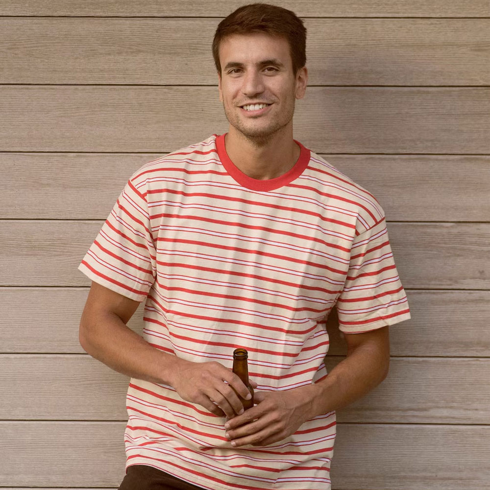 The contrast collar and sleeve trims bring a retro vibe that’s come back into fashion. This T-shirt is playful yet classic, often used in youth, college, or nostalgia-driven collections. It's a stylish way to add color variation to your range.