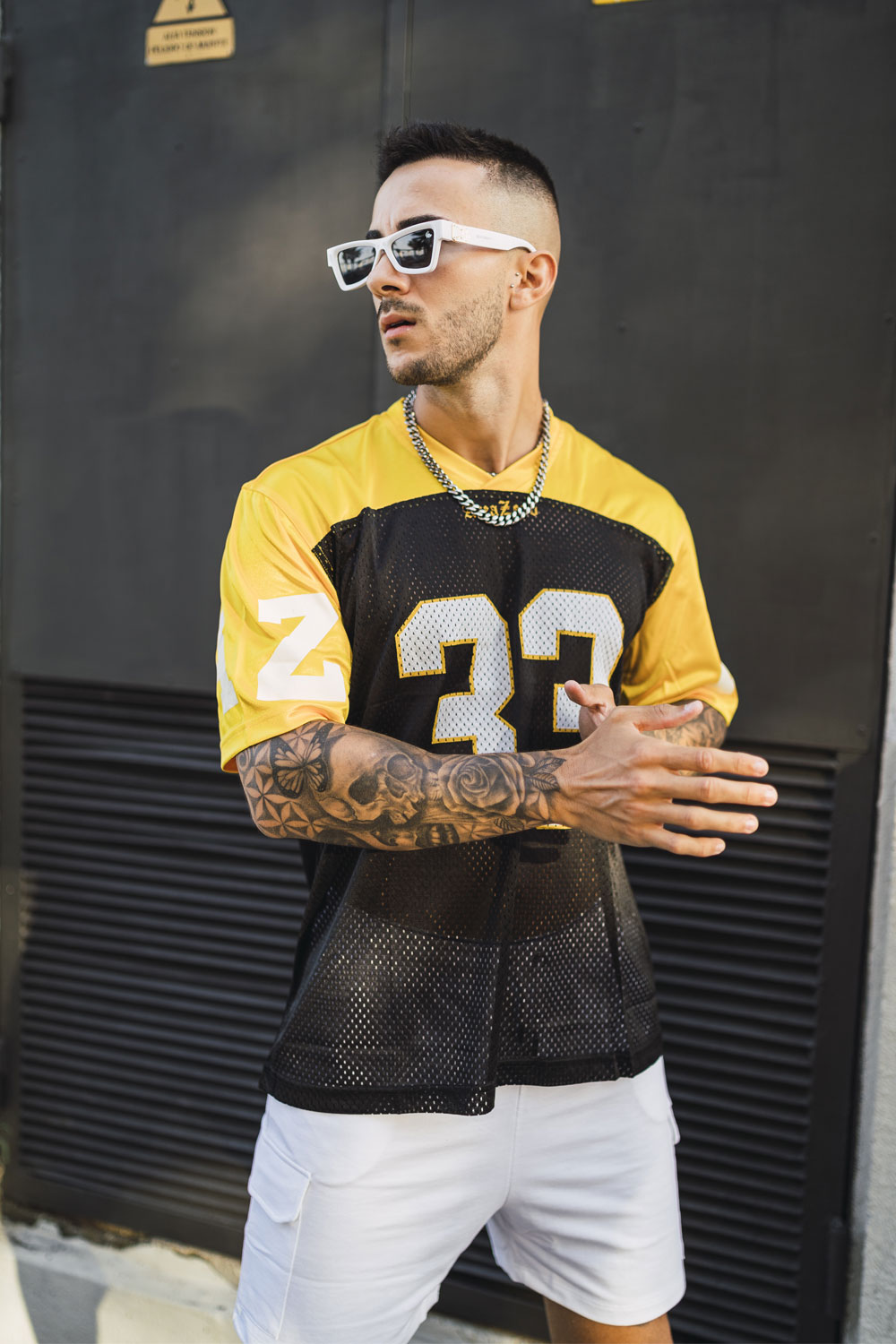 A casual version with football-inspired styling for lifestyle or athleisure wear.