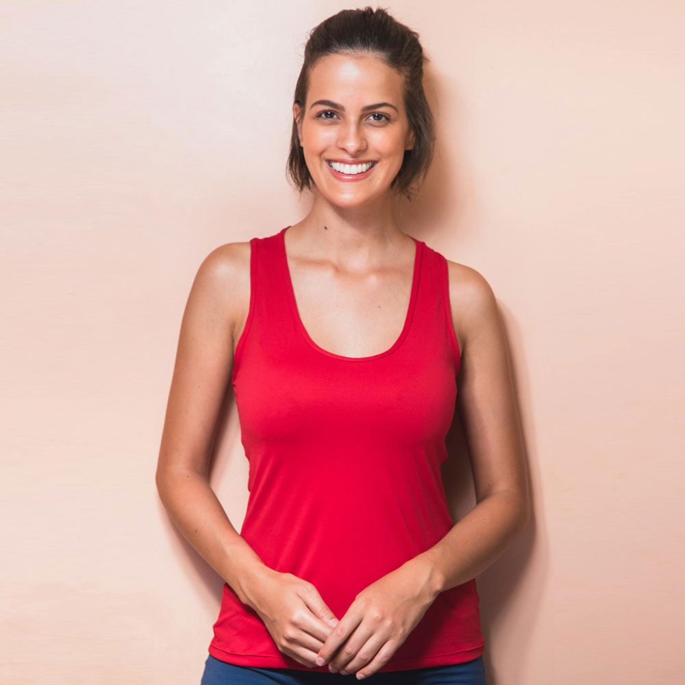 A performance-first tank with a racerback cut for mobility. Designed to handle sweat, movement, and repeated use — essential for athleisure and sports collections.